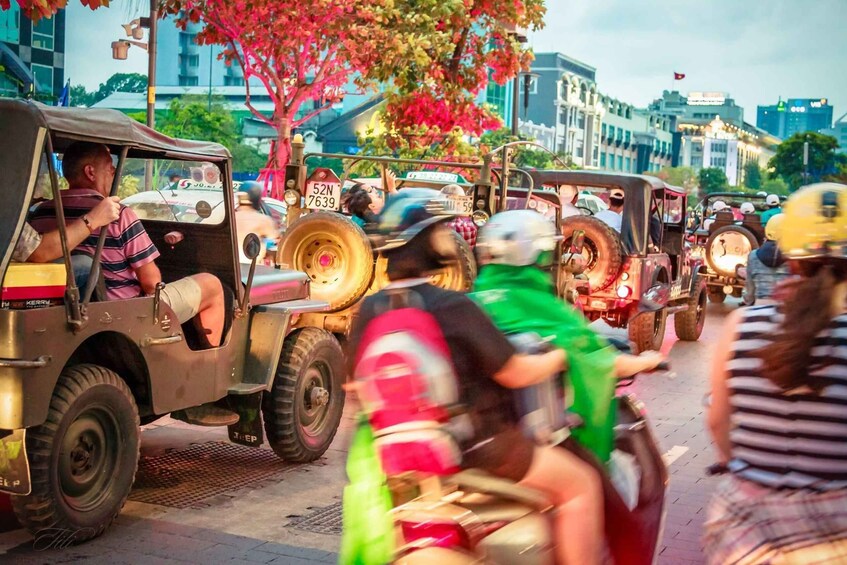 Private Jeep Tour Saigon by Night & Cruise Dinner with Music